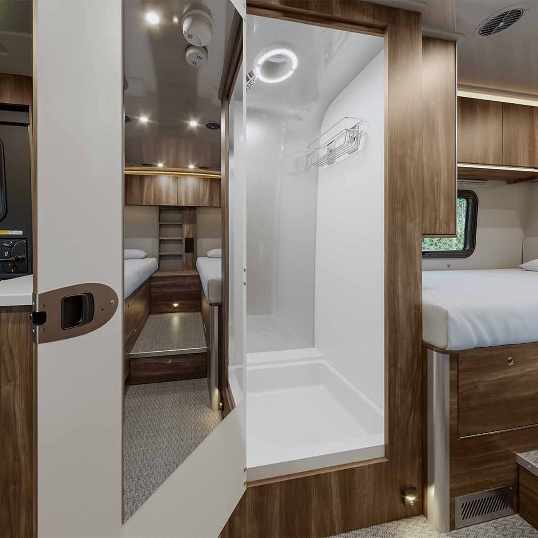 Power Meets Precision with the Atlas 25RT. Built on a dependable chassis and powered by a responsive diesel engine, this coach delivers smooth acceleration, confident handling, and comfortable control on highways or scenic backroads. With advanced technologies like Comfort Drive steering and stability systems, long trips and tight spots feel effortless.