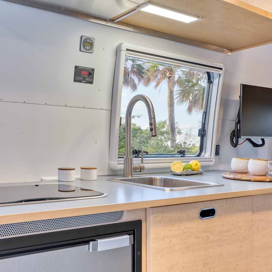 The World Traveler is built with Airstream’s legendary riveted aluminum exterior and high-strength frame, engineered to handle changing weather and rugged conditions. Its aerodynamic design improves towing efficiency and stability, while smart weight distribution makes hitching and steering feel natural and smooth. This travel trailer delivers the perfect balance of strength and comfort, ready for both weekend escapes and extended journeys.