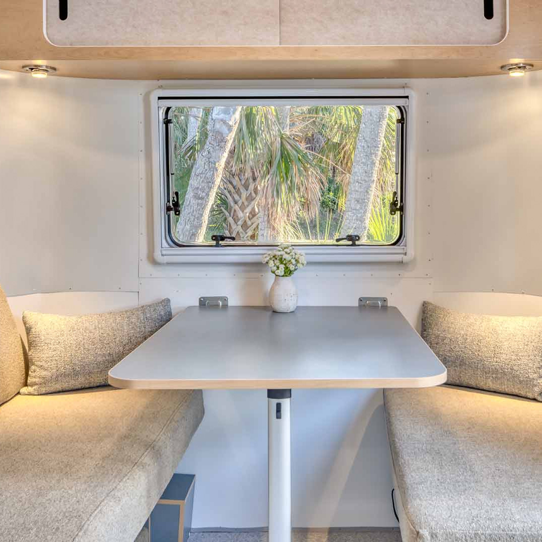 If you’re ready to get away for a weekend adventure with your partner, the Bambi Travel Trailer is perfect. But it’s also a great way to bring some family, friends, and pets along for the trip, too. Two people can comfortably sleep in the dedicated bed, and you can easily and quickly convert the dinette into extra sleeping space for two.